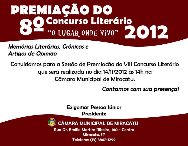 Convite - Premiação do 8º Concurso Literário